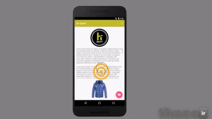 حالا آماده‌ام که از برنامه ران بگیرم و jacket در پایین صفحه نمایش ظاهر میشود و لوگو هم که در بالا صفحه هست و متن قابل اسکرول هم بین آنها قرار دارد و می بینیم که خیلی هم خوب کار میکند.